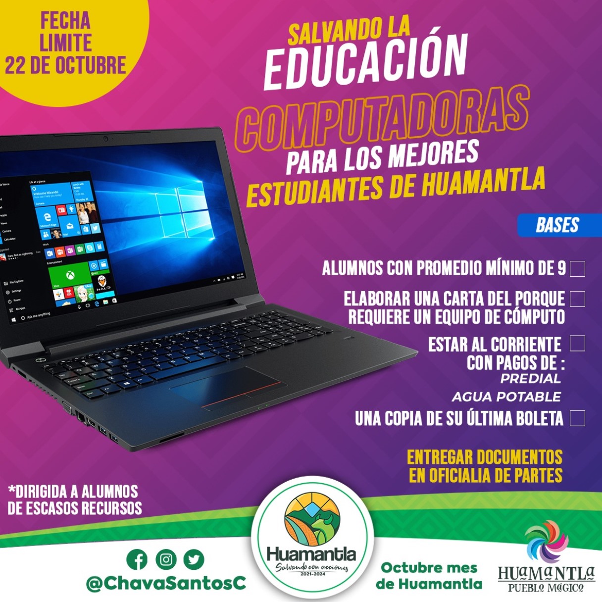 Este 22 de octubre cierra convocatoria para los mejores estudiantes de Huamantla y se beneficien con una computadora gratis