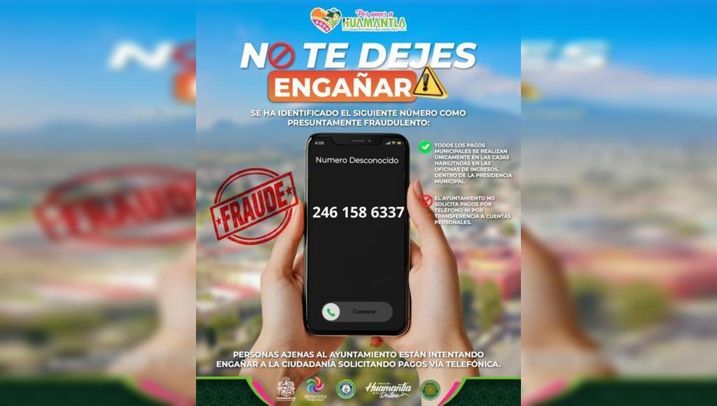 DebatePúblico.- El Gobierno Municipal de Huamantla informa a la ciudadanía que se ha detectado un número telefónico fraudulento que está realizando llamadas a nombre del Ayuntamiento con la finalidad de engañar a la población. De acuerdo con los reportes recibidos, desde el número 246 158 6337 se están realizando llamadas en las que se mencionaSigueSigue leyendo «Gobierno Municipal de Huamantla alerta sobre llamadas fraudulentas a nombre del Ayuntamiento»