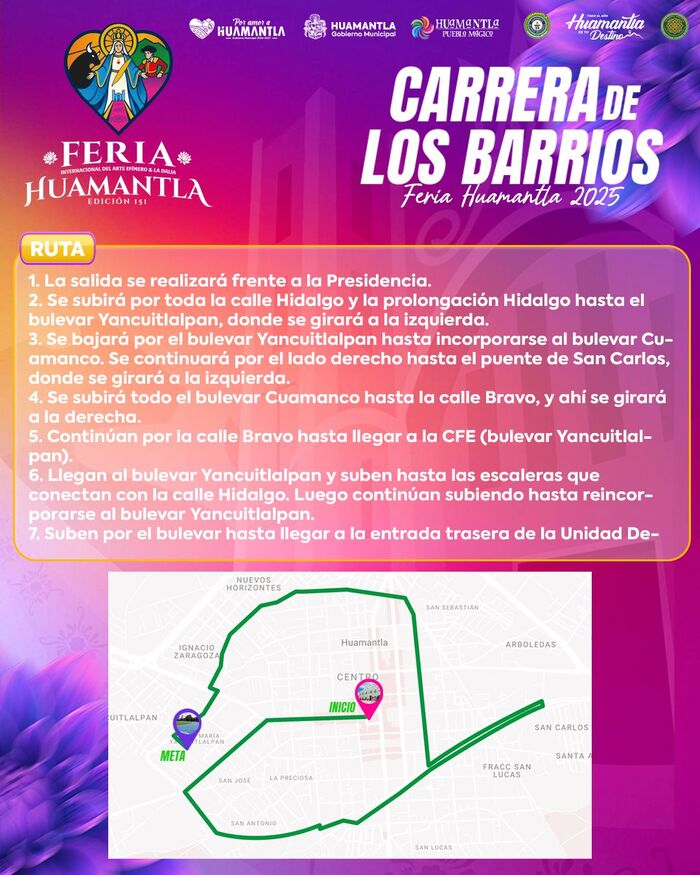 DebatePúblico.- El Gobierno Municipal de Huamantla, que encabeza Salvador Santos Cedillo, informa que este viernes 8 de agosto se llevará a cabo la tradicional Carrera de los Barrios, actividad deportiva emblemática de la Feria Internacional del Arte Efímero y de la Dalia Huamantla 2025. El evento dará inicio a las 8:00 a.m. y recorrerá distintasSigueSigue leyendo «Todo listo para la tradicional Carrera de los Barrios en Huamantla 2025»