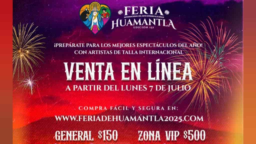 DebatePúblico.- El Gobierno Municipal de Huamantla informa que a partir de este lunes 7 de julio a las 12:00 del mediodía, dará inicio la venta oficial de boletos en línea para los eventos artísticos de la 151ª Feria Internacional del Arte Efímero y la Dalia Huamantla 2025, a través del sitio web:🌐 http://www.feriadehuamantla2025.com Con elSigueSigue leyendo «Inicia venta en línea de boletos para los espectáculos de la Feria Huamantla 2025»