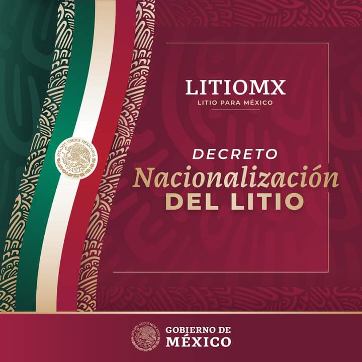 DP.- El decreto es un paso más del Gobierno después de la reforma a la Ley Minera de abril de 2022 que declaró al litio como mineral de utilidad pública cuya explotación será facultad exclusiva del Estado mediante una nueva empresa pública, Litio para México (LitioMX), que dependerá de la Sener. El mandatario mexicano firmóSigueSigue leyendo «López Obrador firma decreto para reservar 234.855 hectáreas de litio a México»