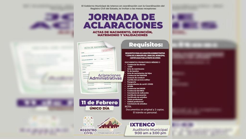 DebatePúblico.- El próximo miércoles 11 de febrero se realizará en Ixtenco una Jornada de Aclaraciones Administrativas de Actas, dirigida a personas que necesiten corregir datos, validar información o regularizar documentos oficiales como actas de nacimiento, matrimonio y defunción. La atención se brindará en el Auditorio Municipal, en un horario de 9:00 de la mañana aSigueSigue leyendo «Ixtenco será sede de jornada para corregir y validar actas oficiales»