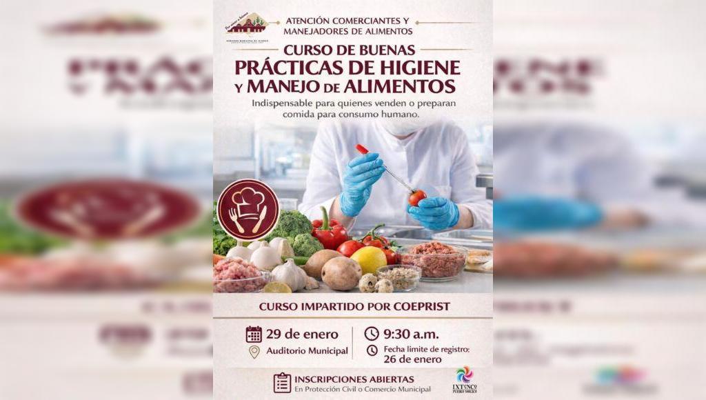 DebatePúblico.- El Gobierno Municipal de Ixtenco hace un llamado a comerciantes y personas dedicadas a la preparación y venta de alimentos para participar en el Curso de Buenas Prácticas de Higiene y Manejo de Alimentos, que se llevará a cabo mañana jueves 29 de enero en el Auditorio Municipal, a las 9:30 de la mañana,SigueSigue leyendo «Mañana, único día para tomar el curso de manejo higiénico de alimentos en Ixtenco»