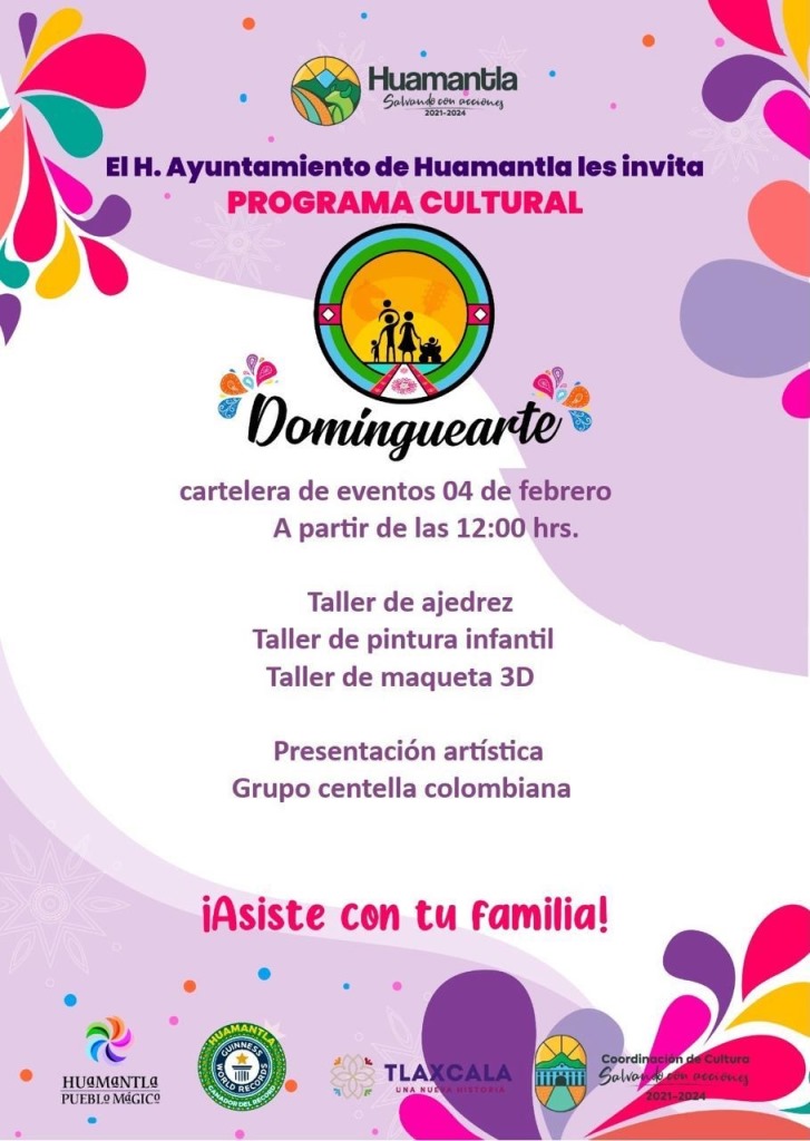 DebatePúblico.- Con mucha alegría se vivirá una edición más de «Dominguearte» en este primer fin de semana de febrero, un programa impulsado por el H.Ayuntamiento de Huamantla a través de la Coordinación de Cultura municipal, con el objetivo de ofrecer espacios de diversión y convivencia familiar. Por lo que una vez más, en el KioscoSigueSigue leyendo «UN DOMINGO DE ARTE, CULTURA y DIVERSIÓN FAMILIAR EN HUAMANTLA»