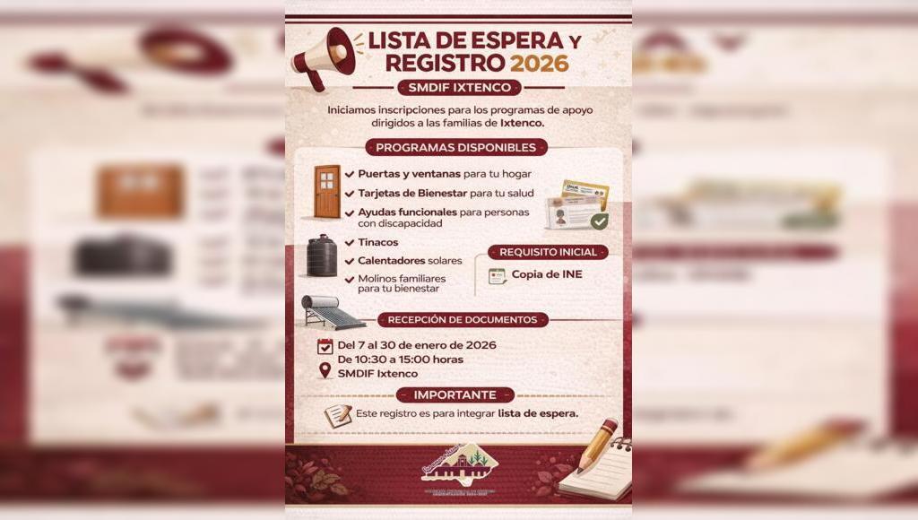 SMDIF Ixtenco abre inscripciones para la Lista de Espera de Programas de Apoyo 2026
