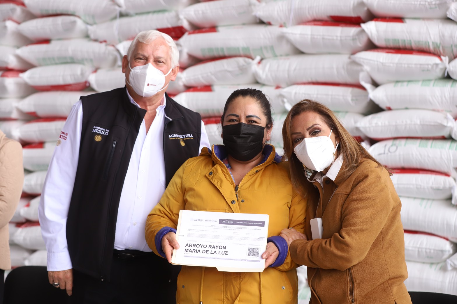 Gobernadora Lorena Cuéllar y secretario Víctor Villalobos entregan fertilizante a productores en Calpulalpan