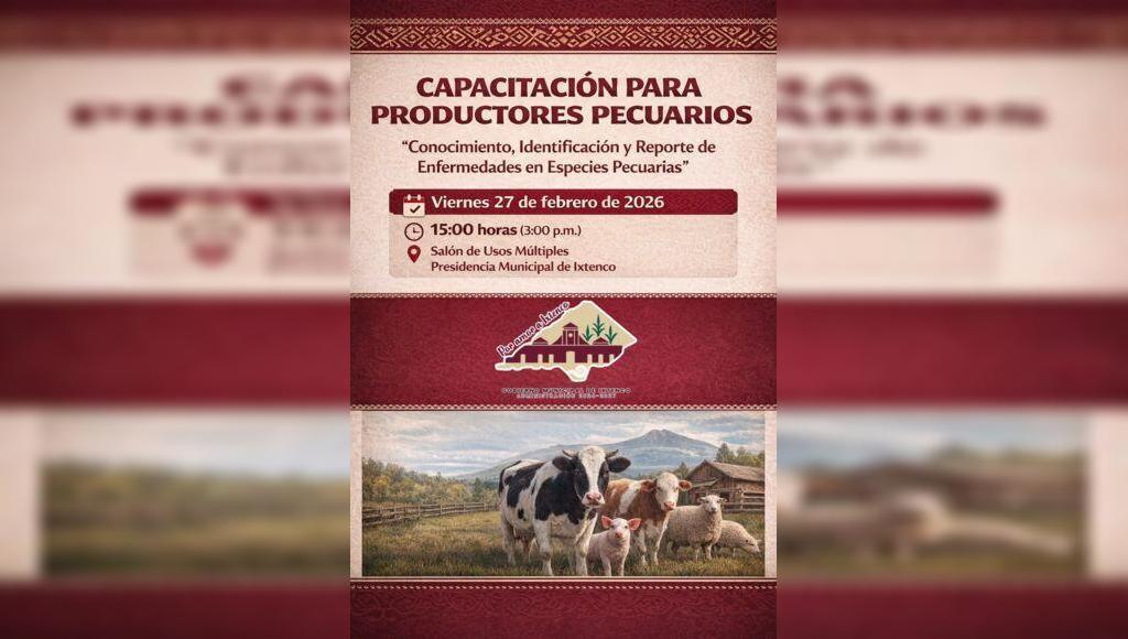 DebatePúblico.- Con el objetivo de reforzar la prevención y detección oportuna de enfermedades en el sector pecuario, el Gobierno Municipal de Ixtenco llevará a cabo la capacitación denominada “Conocimiento, Identificación y Reporte de Enfermedades en Especies Pecuarias”. La actividad se realizará el próximo viernes 27 de febrero de 2026, a las 15:00 horas (3:00 p.m.),SigueSigue leyendo «Ixtenco fortalece la sanidad animal con capacitación dirigida a productores pecuarios»