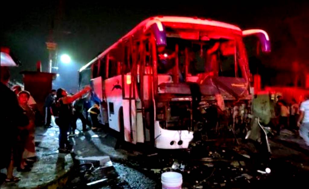 Autobús con peregrinos se incendia por pirotecnia; hay varios heridos