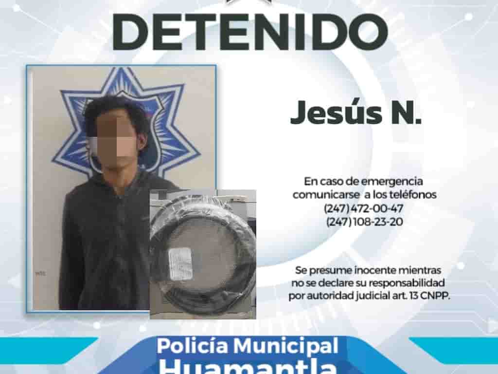 DETIENE POLICÍA DE HUAMANTLA A SUJETO SEÑALADO POR ROBAR CABLE DE TELECOMUNICACIONES