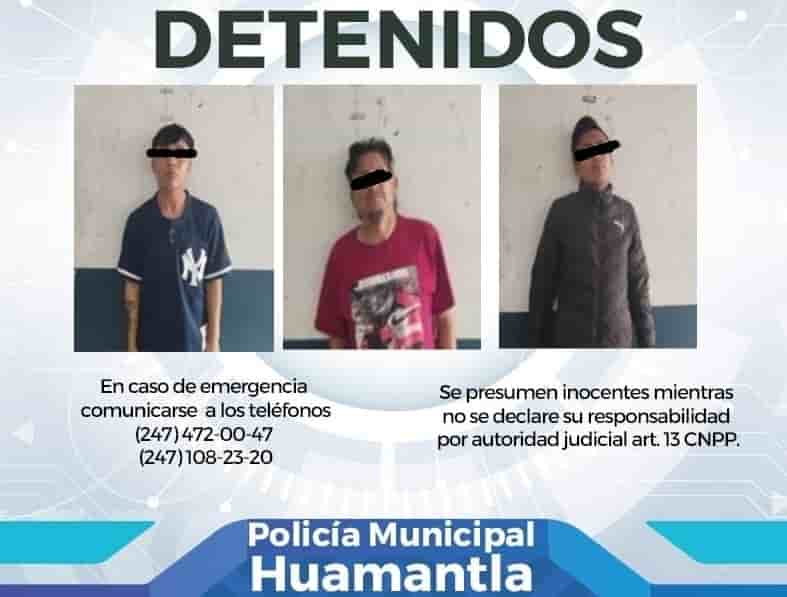 DETIENE POLICÍA DE HUAMANTLA A TRES SUJETOS POR INTENTO DE ROBO A CASA HABITACIÓN
