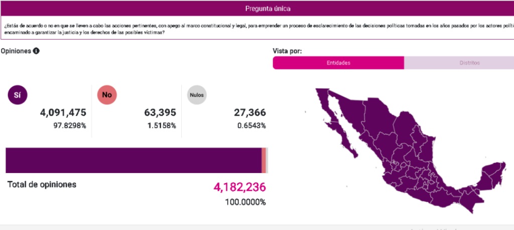 Conteo rápido del INE: más de 97% respondió “Sí” en la consulta popular