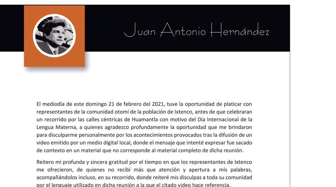 Juan Antonio Hernández se disculpa con representantes de Ixtenco
