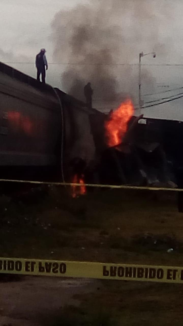 IMPRUDENCIA OCASIONA INCENDIO DE TRAILER Y CUANTIOSOS DAÑOS MATERIALES: CONDUCTOR INTENTA GANARLE EL PASO AL TREN