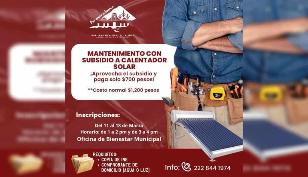Gobierno Municipal de Ixtenco impulsa segunda campaña de mantenimiento con costo subsidiado para calentadores solares