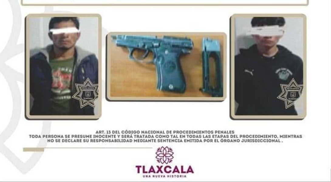 Huamantla: Policía Estatal asegura a dos sujetos con réplica de arma de fuego